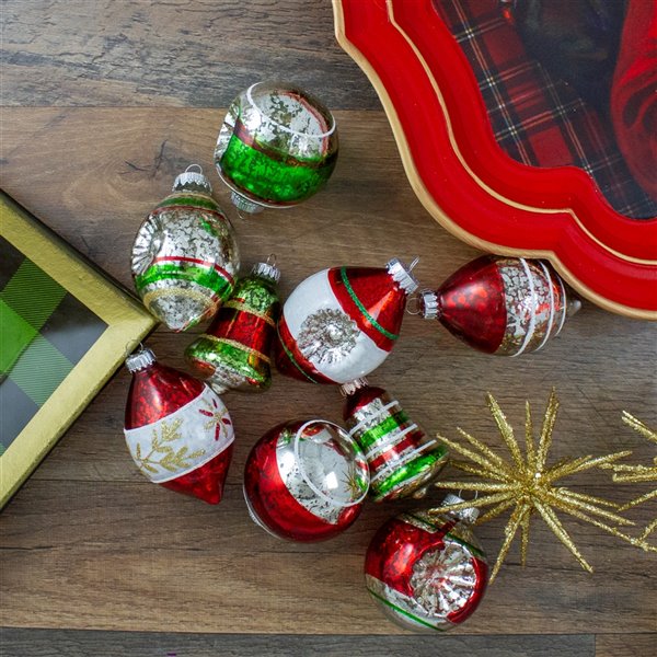 Northlight 2 Finish Glass Christmas Finial Ornaments 3.25 in