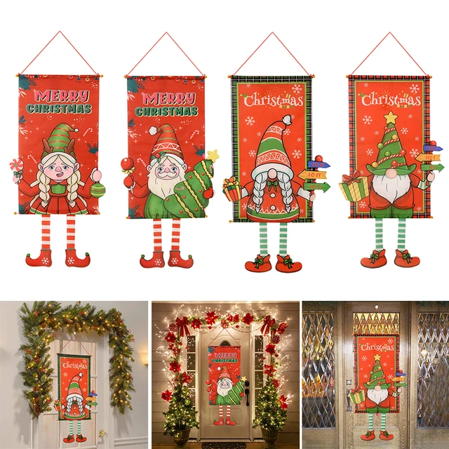 Merry Christmas Hanging Flag Banner Santa Snome Banner Home Door