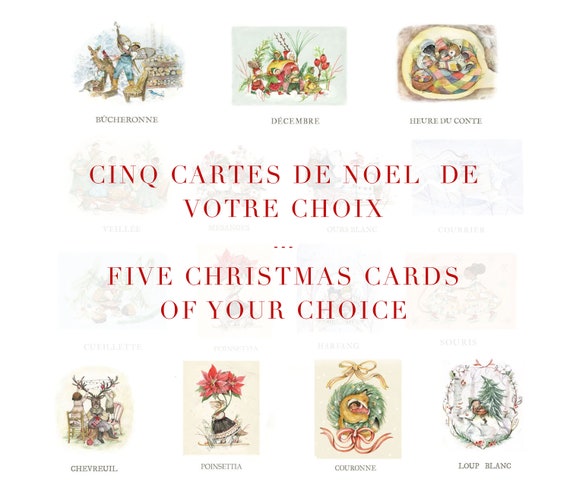 Set of Five Greeting Cards for Winter Time Merry Christmas Etsy